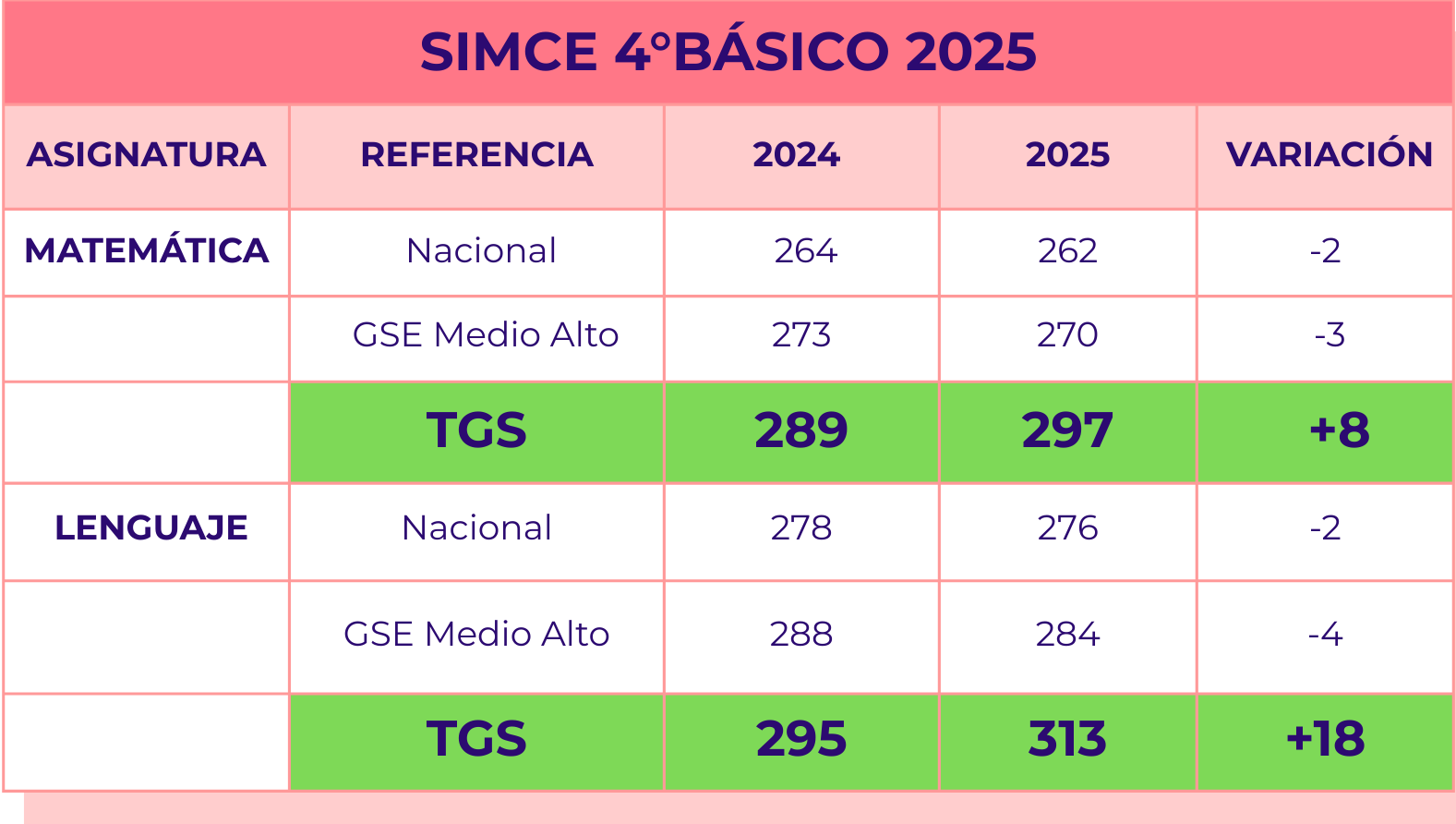 Crecimiento Imparable: No solo mantenemos la excelencia, ¡crecemos! En 4° Básico, subimos 18 puntos en Lenguaje y 8 puntos en Matemática respecto al año anterior.